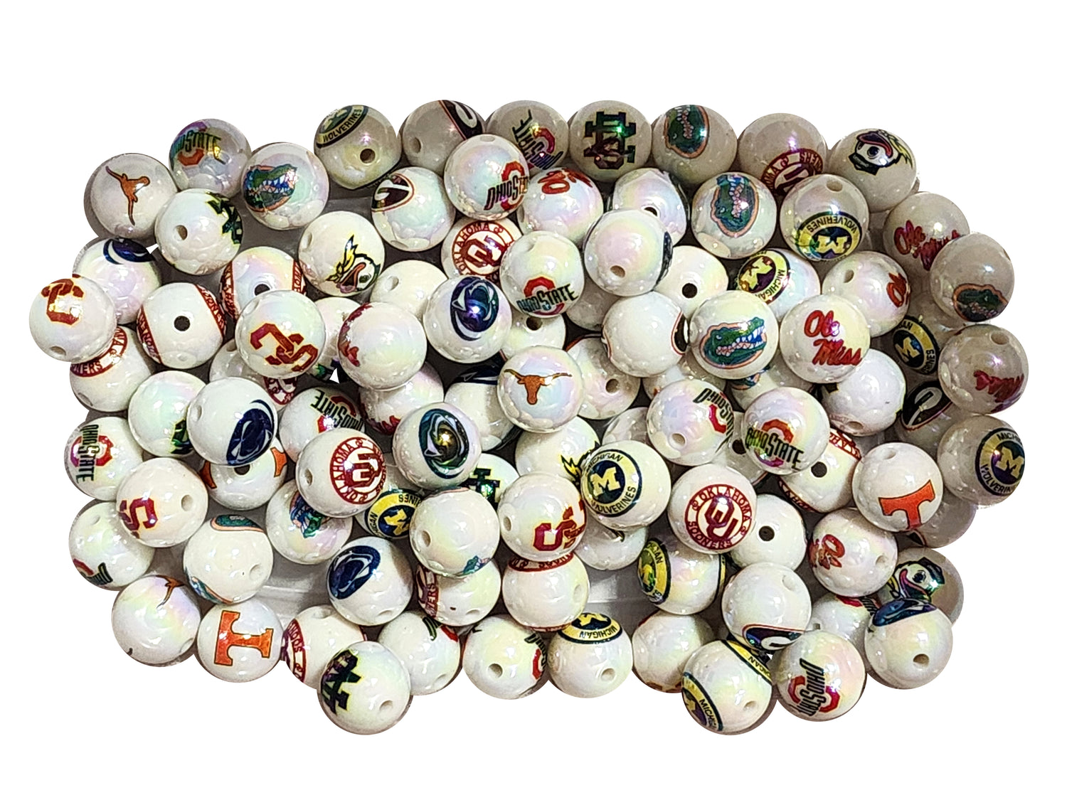 16mm AB college university team logos custom printed bubblegum beads - 20 beads